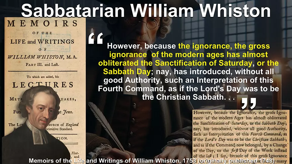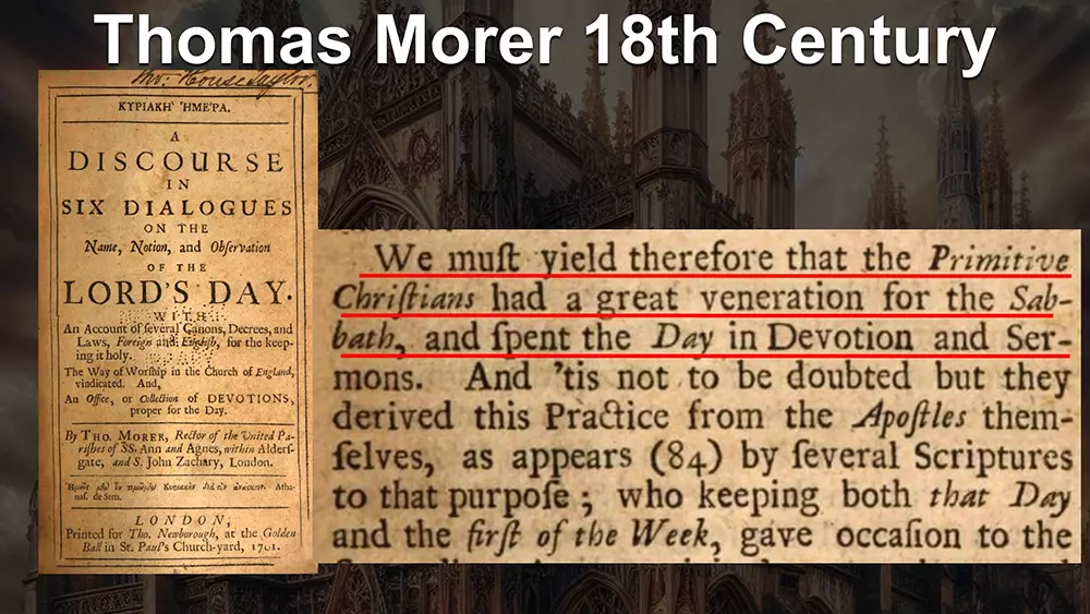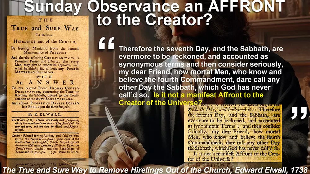 It is wonderful, that such a World of People, yea, of so many Ages, have not, nor do yet see the Mystery of Wickedness, Iniquity and Lawlessness, . . .or rather will not, I shall not be fearful nor slack to tell them, that their First Day of the Week, instituted without God and Scripture, by the Pope of Rome, is that same Image, whom all People, Tongues and Nations in all Christendom (so called) do worship, for it is a Part of the Number of the Beast, having 60 Cubits in Height, and 6 in breadth, which is 66. . .