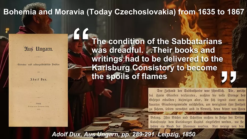 The condition of the Sabbatarians was dreadful. . .Their books and writings had to be delivered to the Karlsburg Consistory to become the spoils of flames ...