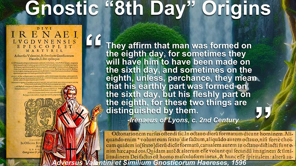They affirm that man was formed on the eighth day, for sometimes they will have him to have been made on the sixth day, and sometimes on the eighth, unless, perchance, they mean that his earthly part was formed on the sixth day, but his fleshly part on the eighth, for these two things are distinguished by them.
